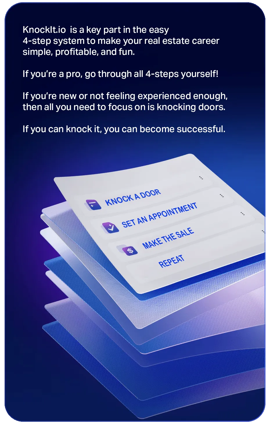 Knockit can be tailored to your specific needs within just one week. Whether you’re focusing on a small town or a major market, our system is designed to get you up and running quickly so your team can start making money without delay.